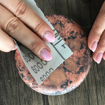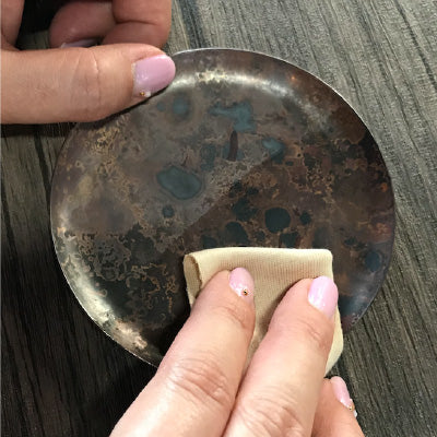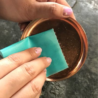 First, polish the copper plate to be colored with sandpaper.