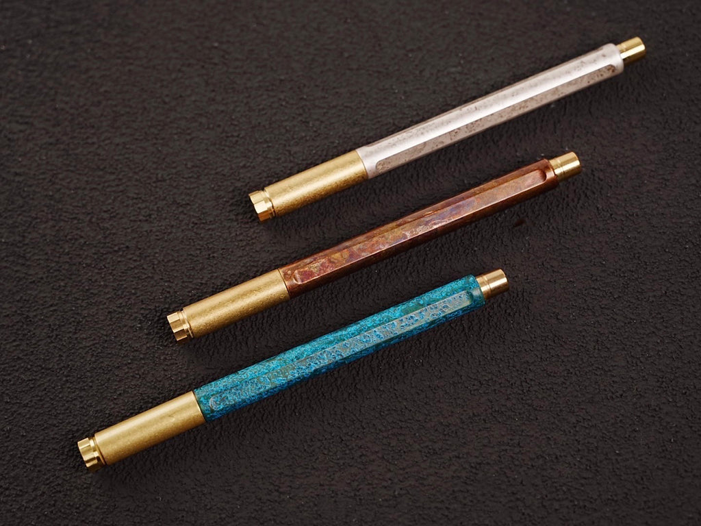 ペンの本体は金属表面をさびさせ発色させる伝統技法